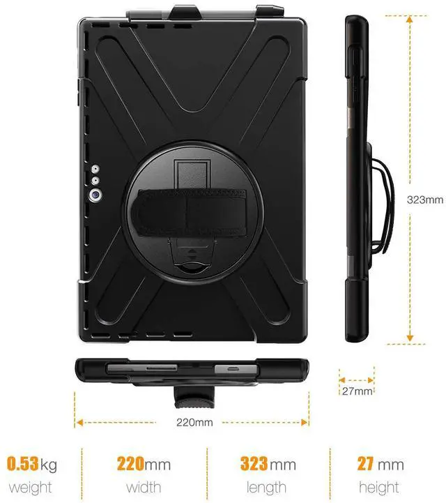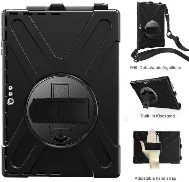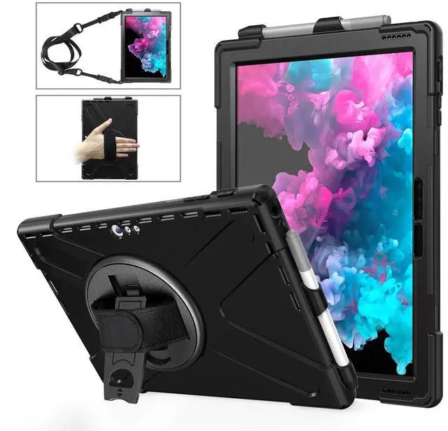 Rantice Case for Microsoft Surface Pro 7 Plus/Pro 7, Heavy Duty Rugged Shockproof Drop Protection Case with 360 Stand, Pen Holder, Hand Strap & Shoulder StrapBlack