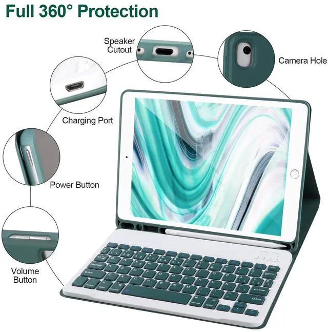 AHYWTAN Keyboard Case for iPad 9/8/7th Gen 10.2,Case with Keyboard ipad 10.2 inch,Keyboard for iPad 9th Gen,Bluetooth Keyboard for iPad 10.2,iPad Keyboard Case 9th Gen with Pencil Holder (Green-B)