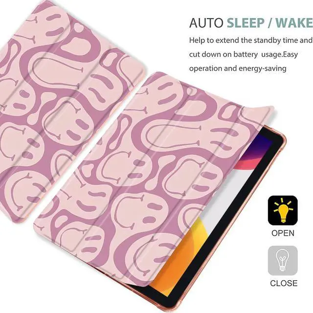 MAYCARI Pink Funny Face Case for iPad 10.2 inch 2021/2020/2019 with Pencil Holder, 70's Retro Pattern iPad 9th/8th/7th Generation Protective Case with Soft TPU Back, Auto Sleep/Wake Cover Slim Shell