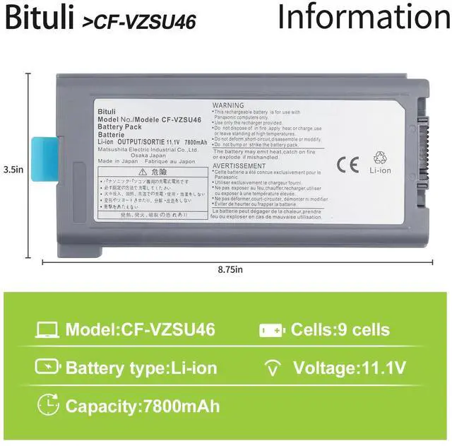 Compatible Part NumbersCF-VZSU46, CF-VZSU46S, CF-VZSU46U, CF-VZSU46R, CF-VZSU46AU, CF-VZSU71U, CF-VZSU72U, CF-VZSU1430U