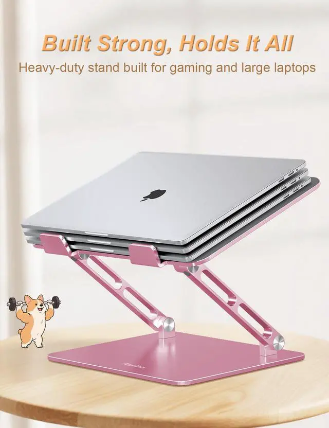 Aoviho Adjustable Portable Laptop Stand for Desk - Ergonomic Aluminum Laptop Riser, Heavy-Duty Laptop Holder for Large Laptops Compatible with MacBook Air Pro, Dell, HP, Lenovo (10"-17"), Pink