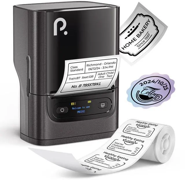 POLONO PM220S Label Maker Machine with Tape, Bluetooth Thermal Label Printer, Portable Sticker Printer