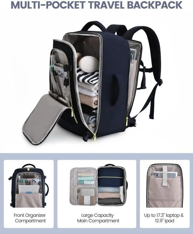 LOVEVOOK Travel Backpack for Women, 40L Carry On Backpack Flight Approved, Large Personal Item Bag Fits 17 inch Laptop, TSA Approved Luggage with 3 Packing Cubes, Waterproof Weekender Gym Essentials