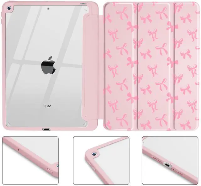 Idocolors Cute Pink Bow Case for iPad 2022/2025 (10th/11th Gen) 10.9", Clear Hard Back Cover with Pencil Holder, Tri-fold Stand Full Wrap Protective Case for Women Girls