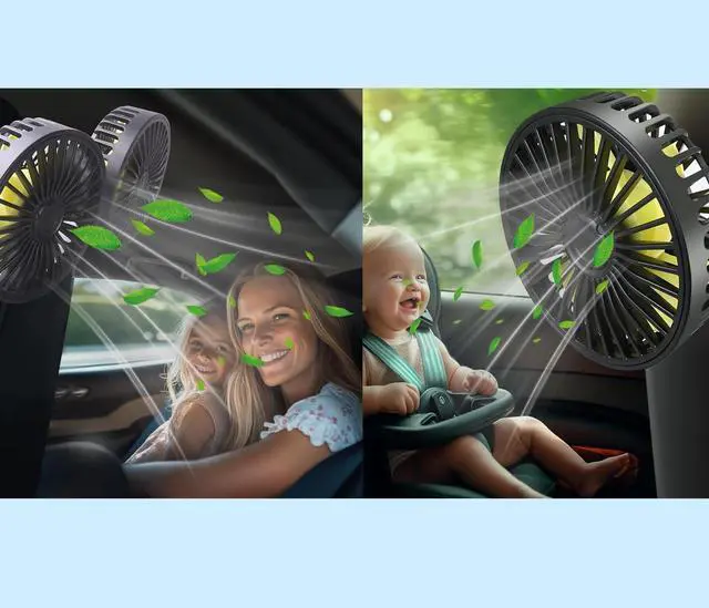 Whether you are driving long distances, commuting daily, or traveling outdoors, our dual-head and single-head car fan combination can provide you with a full range of cool and comfortable experience. The dual-head fan design can provide independent wind direction adjustment for both the driver and the passenger, while the single-head fan is light, flexible, and suitable for single use. High-quality materials and low-noise design ensure quiet operation while providing strong wind. USB power supply design, compatible with USB interface, bring you cool enjoyment anytime, anywhere.