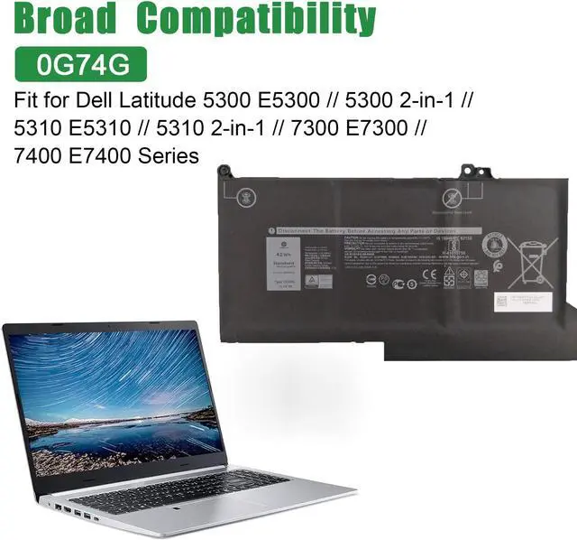 JIAZIJIA 0G74G 02PFPW Laptop Battery Replacement for Dell Latitude 5300 5310 7300 7400 P97G P97G001 P97G002 P96G P96G002 P96G003 P99G P99G001 P100G P100G001 Series OG74G 2PFPW 11.4V 42Wh 3500mAh