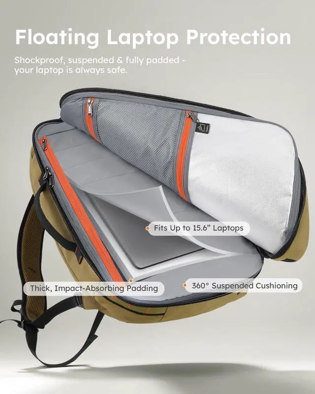 Quick Laptop Access & Shockproof ProtectionKeep your laptop safe and within reach. Our inner laptop compartment (fits up to 15.6") of travel backpack is suspended to absorb shocks and impacts, protecting your device even when the bag is set down hard. The smart side-access design lets you grab your laptop instantlyno need to open the main compartment. Perfect for busy professionals and frequent travelers who need both security and speed