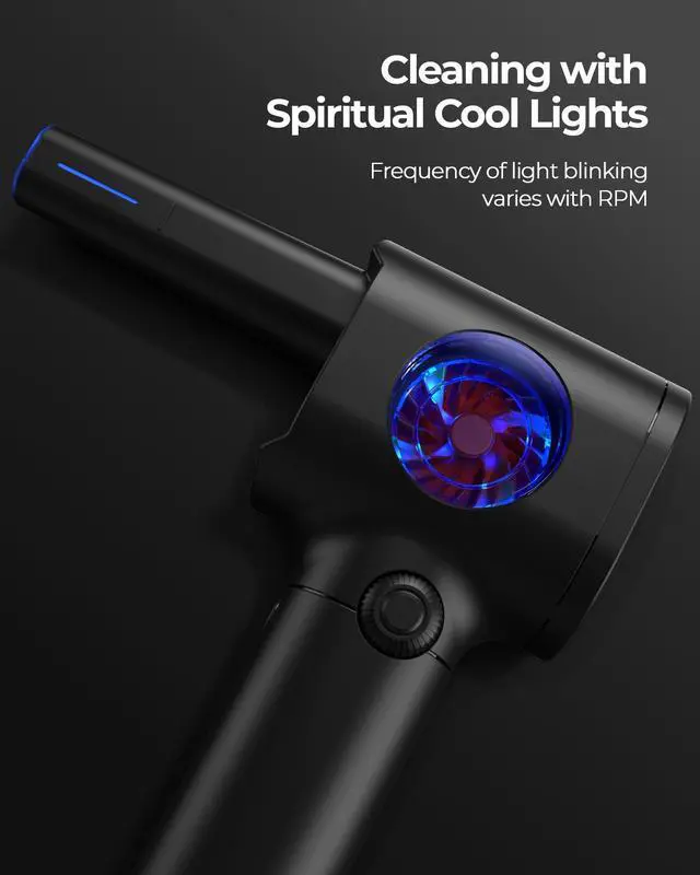 Cool Dynamic Lights: This compressed air duster not only blows away dust and debris efficiently but also features a cool dynamic lights that change with the blowing force, which not only adds a touch of style to your cleaning routine, but also brings a fun and vibrant atmosphere to your workspace or home.