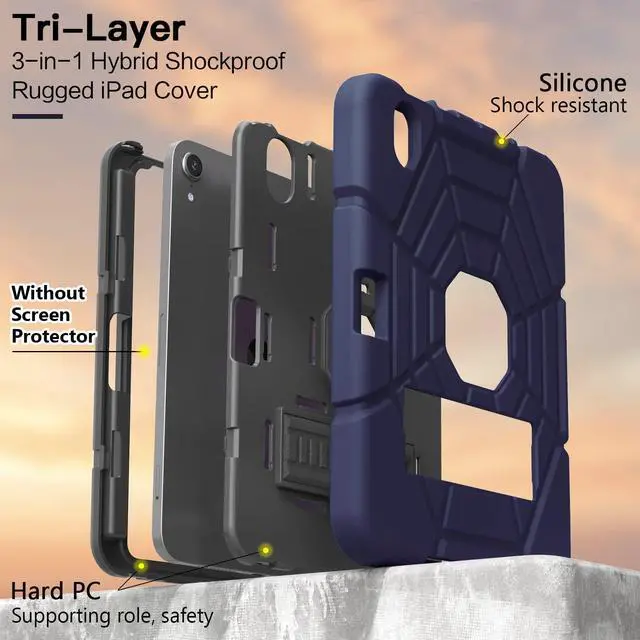 Shockproof Rugged Design - Tablet 8.3 Case made of durable Hard PC+Silicone, 3-layer Full Body protection structure,provide a perfect protection,protects your Mini 7th/6th Generation 8.3" 2024/2021 from scratches and accidental drops,bumps,and impacts.