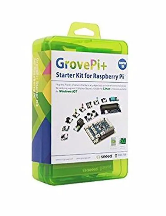 What is GrovePi+ Start kit for Raspberry Pi? Carrying a GrovePi+ board together with 12 carefully selective Grove sensors with 10 pieces cables, this starter kit gets you up and running with the Raspberry Pi quickly. Just slip the GrovePi+ board over your Raspberry Pi and connect sensors to the board, you're ready to start hardware playing and prototyping with the powerful platform. About The GrovePi+, It is stacked on top of the Raspberry Pi without the need for any other connections. Communication between the two occurs over the I2C interface. All Grove modules connect to the universal Grove connectors on the GrovePi+ shield via the universal 4 pin connector cable.