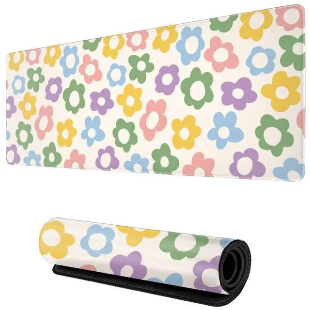 Pretty Vintage Groovy Flower Cute Floral Mouse Pad Gaming XL Large Mousepad Desk Mat Long Extended Big Keyboard Pads Table Accessories for Gaming and Office Pc Laptop Computer 31.5 X 11.8 Inch