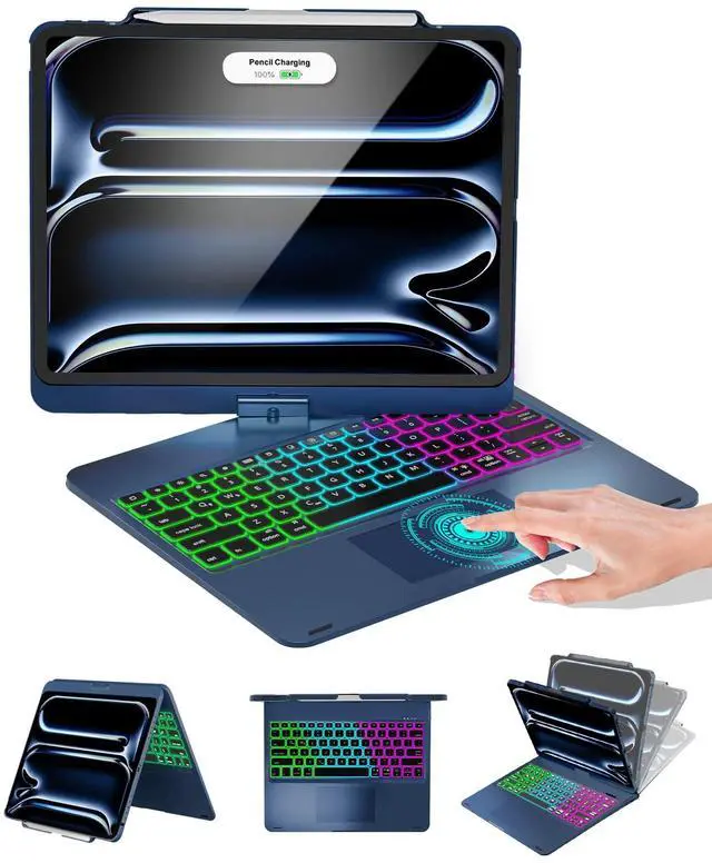 Baisla iPad Pro 13 inch Case with Keyboard (M5/M4)& iPad Air 13 (M3/M2), Premium Hardshell Keyboard for iPad Pro 12.9(6th/5th/4th/3rd Gen),Multi Trackpad, 360 Swivel&Backlit with Pencil Holder - Blue