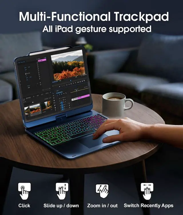 Multi-Touch Trackpad - iPad Pro 13 inch case with keyboard features a large multi-touch trackpad for convenient navigation and flexible gesture control. Enjoy browsing, designing, or drafting with unparalleled convenience. Easily lock the trackpad while typing by pressing fn+T key to avoid accidental touches, and press again to unlock