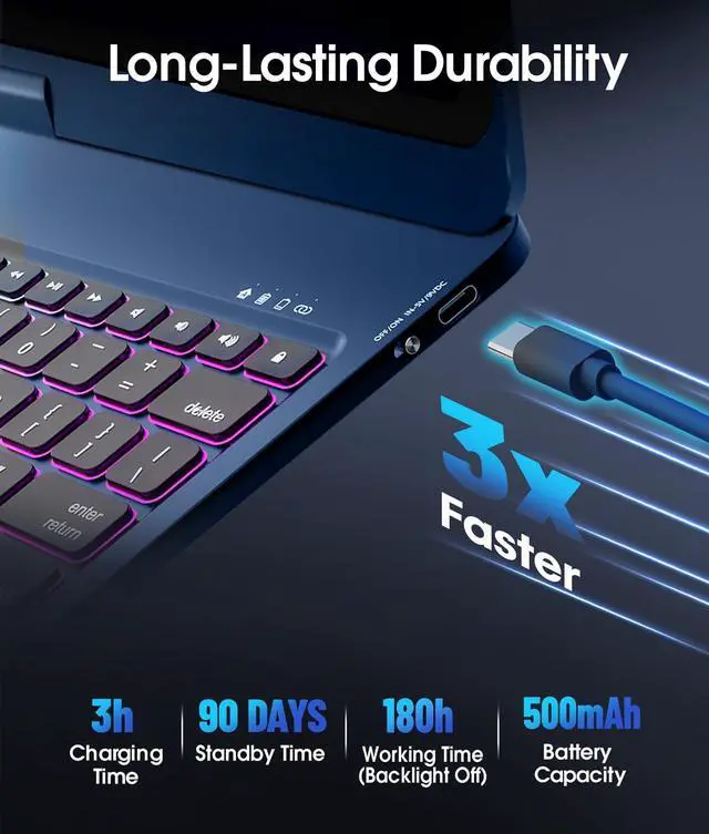 Large Battery Capacity - With a built-in 500mAh large battery and efficient chip, our iPad Air 13 inch case keyboard deli