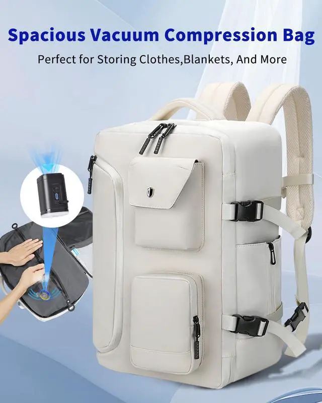 SWICKY Vacuum Travel Backpack with Pump, 40L Vacpack Backpack Compression Seal Bag System, Water Resistant Laptop Carry-On Luggage for Women & Men, Ideal for Business, WorkWhite