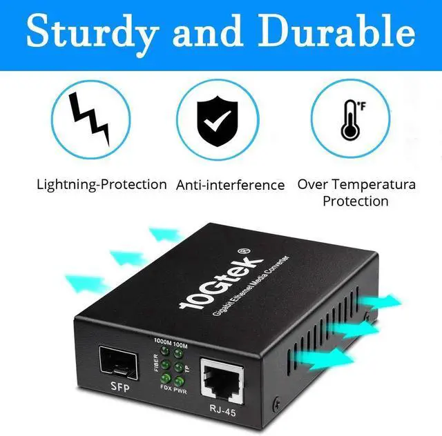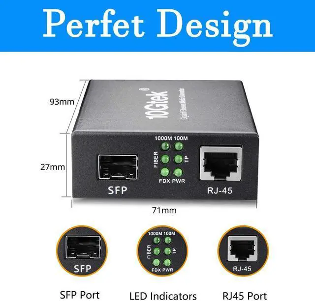 Main Features: Complies with IEEE 802.3, IEEE 802.3 u, IEEE 802.3 z, IEEE 802.3 ab, IEEE 802.3 x Auto negotiation function allows UTP port to auto select 10M, 100M or 1000M Ethernet port supports MDI/MDI-X auto crossover Extends distances up to 550M/ 20KM/ 40KM/ 60KM/ 80KM/ 100KM/ 120KM (multi mode fiber or single mode fiber) Auto MDI/MDI-X support on RJ-45 port Support Full Duplex and Half Duplex Status LED's for TX, FX LINK/ACT, POWER, FDX to easily monitor network status 1Mbit RAM for data buffer Supports jumbo frame size 9K bytes