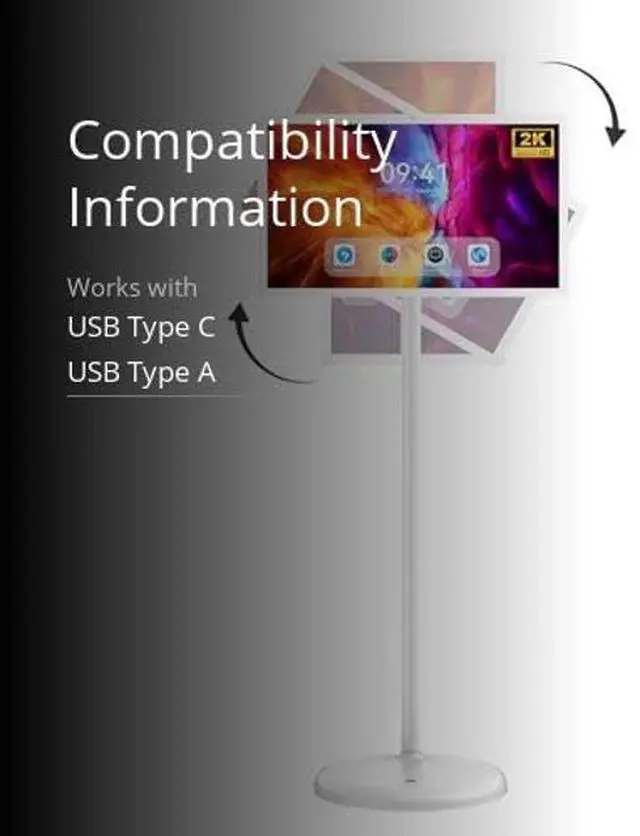 OHYEAHSPIN 22 Inch Portable TV on Wheels, 2K Smart Touch Screen Rolling TV LCD Display with Wires plugged in use, Android OS, Type-C, USB, HDMI Port, Support Wireless Mouse Keyboard