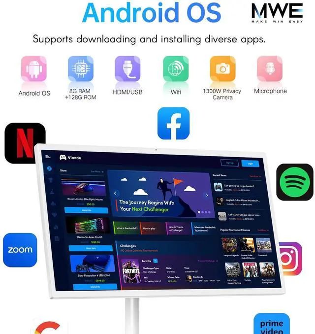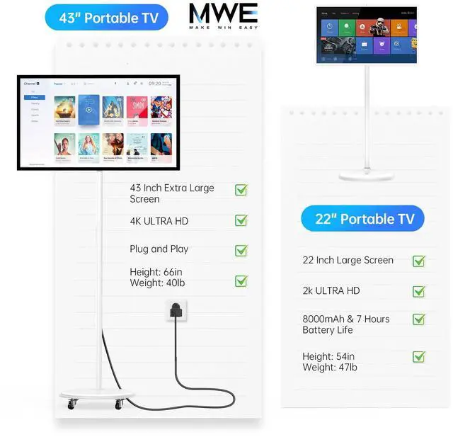 [High-definition touch screen]: MWE-OHYEAHSPIN PortableTV features a 22-inch display with a 60Hz refresh rate and a perfect 16:9 aspect ratio. The 10-point capacitive touchscreen offers smooth and precise interaction, making it ideal for all your entertainment and productivity needs.
