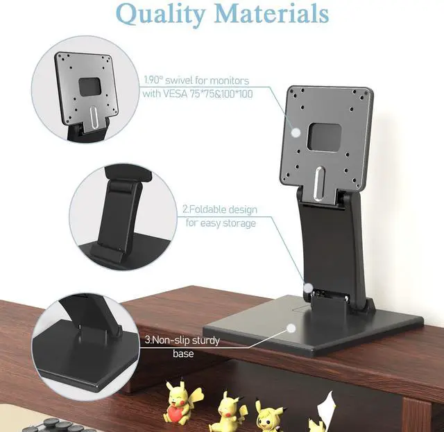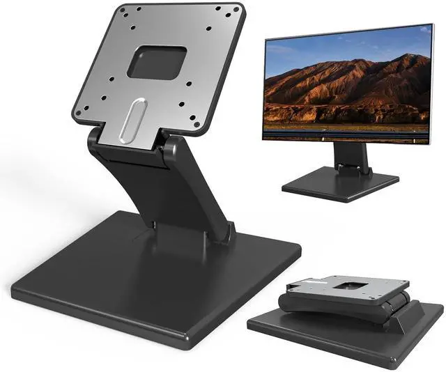 Babibobibi Foldable VESA Stand - 75x75mm/100x100mm LCD/PC Monitor Mount, Black, Lay Flat, Single Monitor Adapter