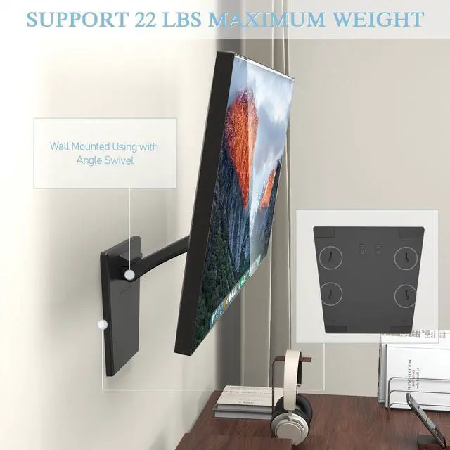 Excellent Weight Bearing The lay flat monitor stand is made entirely of high quality metal and is 2.17 inches thick when folded, up to 12 inches. Our vesa mount stand can weigh up to 22 pounds, effectively reducing the monitor shaking caused when you use it.
