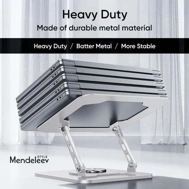 MENDELEEV STYLE Silver Laptop Stand for Desk with 360 Rotating Base Compatible with MacBook Pro/Air Notebook up to 16 Inches Computer Stand for Laptop Ergonimic Foldable Riser for Desk