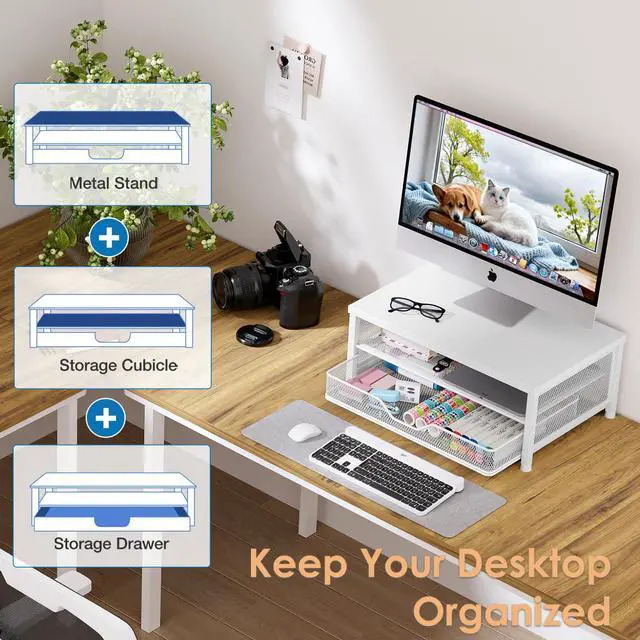 Modern AestheticWith its simple and stylish design, this monitor stand not only organizes your workspace but also enhances the overall style. It blends perfectly with any office decor, adding elegance while enhancing functio