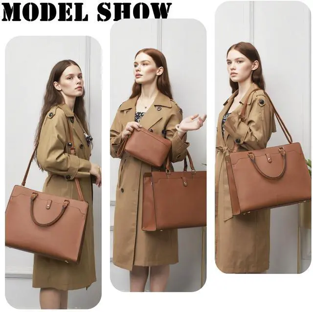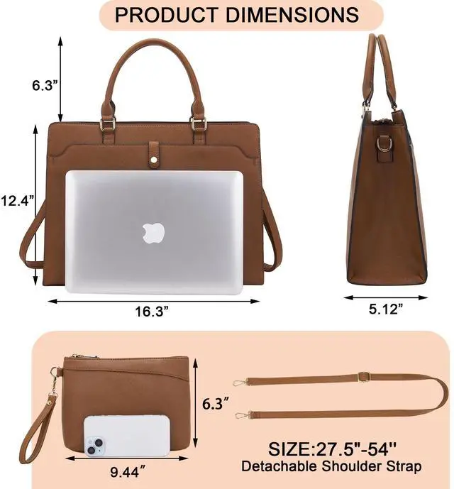 YZAOLL 15.6 Inch Laptop Bag for Women, Lightweight Vegan Leather Work Tote with Clutch Purse, Water-resistant Business Briefcase - Large Capacity Office Bag for Travel, College Essentials (Gift), Brown
