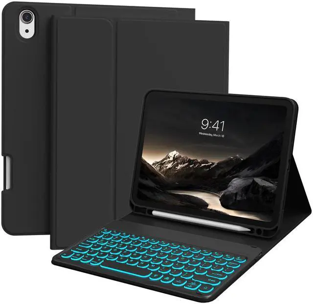 JKSML for iPad 11/10th Generation Case with Keyboard 11-inch A16 2025 10th Gen 10.9 Inch 2022 Wireless Detachable Folio Backlit Keyboard Cover Thin & Light with Pencil Holder (Black)