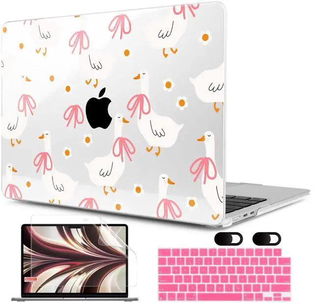 MEEgoodo Case for M4/M3/M2 MacBook Air 13.6 inch Case 2025 2024 2022, Fit Model A3240/A3113/A2681, Laptop Hard Shell with Keyboard Cover Compatible with MacBook Air 13 inch, Goose Farm & Bows