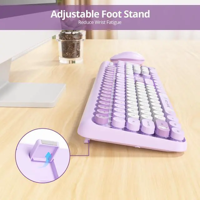 Durable & Ergonomic Design This full-size typewriter keyboard wireless features a spill-resistant creamy keyboard with number pad, durable round keys, and adjustable tilt legs for comfort. The compact wireless mouse offers smooth cursor control on most surfaces.