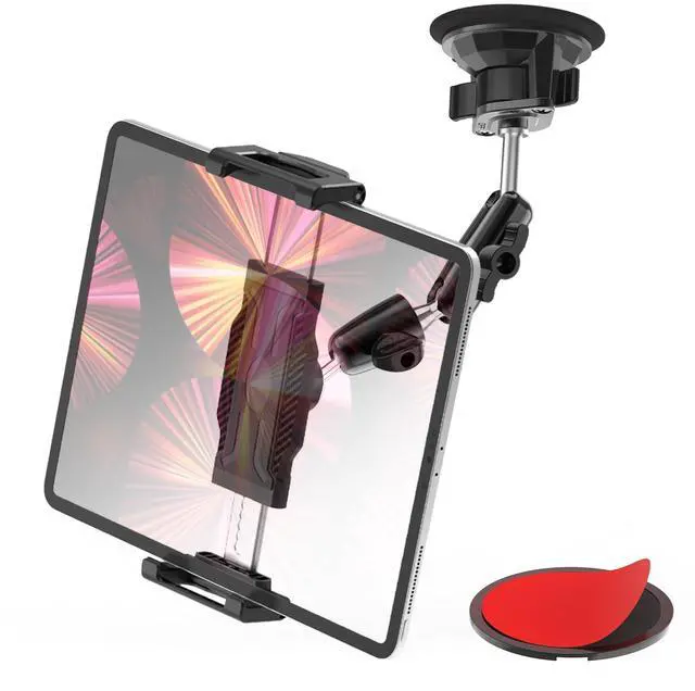 FreeSave Dashboard Tablet Holder with Vacuum Suction Cup for Car/Truck, [360° Metal Foldable Adjustable Arm] Windshield Tablet Mount for iPad Pro/Air/Mini, Galaxy, 6.1-15.6" Device and Thickness Case