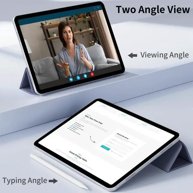 Two-Way Stand: magnetic trifold cover easily folds into a stable stand for viewi