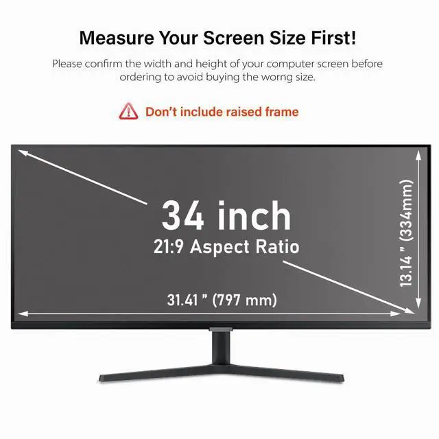 PERFECT FIT: Privacy Filter Dimensions Width: 31 38" (794 mm), Height: 13.15" (334 mm) - Aspect Ratio 21:9. Contact us if you have any questions about dimensions. Welinc computer privacy filter is designed to be ideally compatible with HP, Samsung, Dell, Lenovo, Acer, Asus, LG, ViewSonic, and other monitor brands. Please confirm the width and height measurements for your computer screen before ordering.