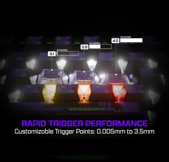 Rapid Trigger 0.005mm Accuracy: Slice68 magnetic keyboard allows you to customize each key's actuation range from 0.005 to 3.5 mm with a precision of 0.005 mm, providing more consistent settings and making every step visible. Personalizing trigger force and activation points offers fast responsiveness and the ultimate gaming experience