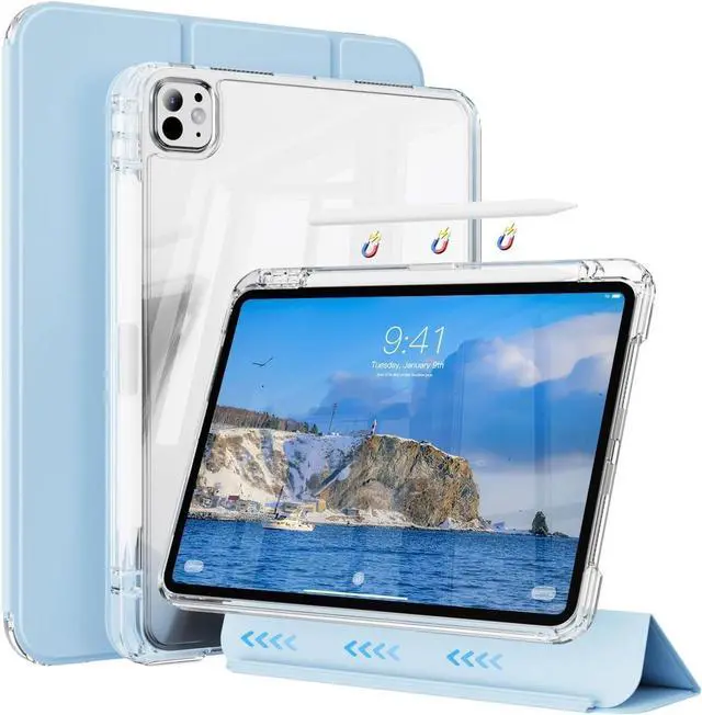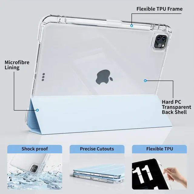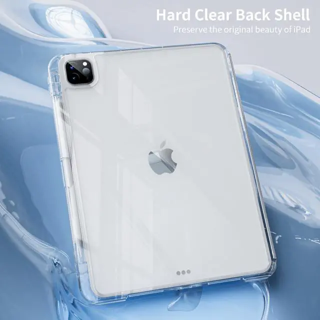 ^^ Full Protection: The transparent hard-shell back cover protects your iPad from shocks, drops, and impacts. The surface is soft and silky, providing a comfortable touch to the skin. You can clearly see the iPad logo through the back cover, while it showcases the original beauty of your iPad.