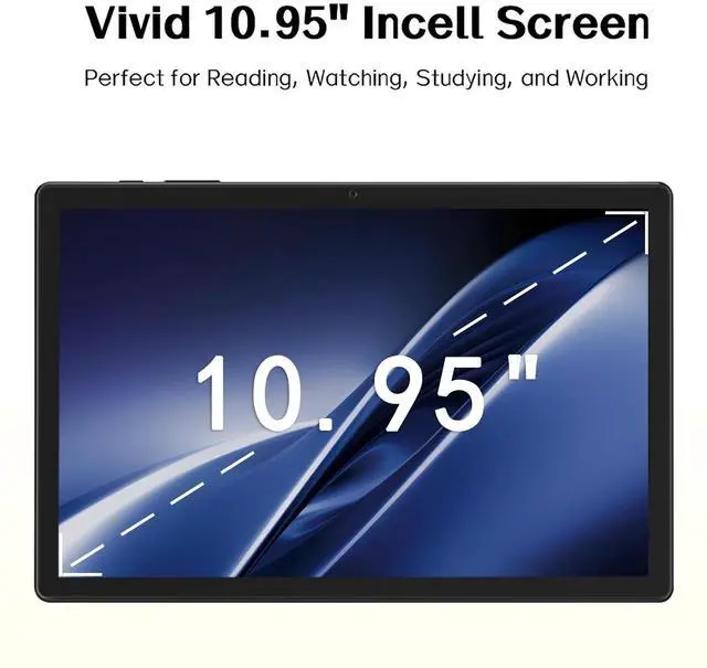 Large Memory & Storage Expansion With 12GB RAM (6GB + 6GB expansion) and 128GB internal storage, this android tablet handles multiple apps and tasks with ease. Need more space? Expand up to 1TB via microSD card (not included). GMS certified and pre-installed with the Google Play Store, it gives you full access to popular apps, games, and services perfect for work, study, or play. Immersive 11-Inch HD Display The 11-inch IPS screen features a 1280x800 resolution and a 16:10 aspect ratio, offering a wide and vivid viewing experience whether you're watching movies, reading eBooks, or video conferencing.