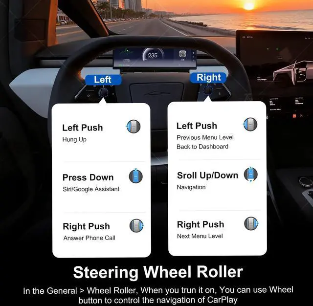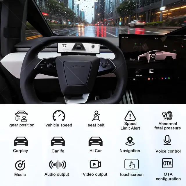 Touchscreen: Enjoy crystal-clear visuals with responsive touch controls for effortless navigation through menus, settings, and real-time driving metrics. ^^ Rainbow Road & Real-Time Data Sync: Displays speed, gear, tire pressure, battery status, and FSD hands-off remindersjust like your Teslas native interface. ^^