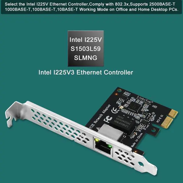 1. This PCIE-I225 is a PCIE X1 interface to 2.5G bps cooper RJ45 ports network adapter. It provides stable and fast 2.5G bps max ethernet connection on desktop PCs for large online gaming, HD video streaming, online phone calls, internet surfing and live broadcast. ^^ 2. Based on Intel I225V 2.5G bE Ethernet controller, supports IEEE 802.3 Ethernet interface for 2500BASE-T, 1000BASE-T, 100BASE-TX, 10BASE-TE connections (IEEE 802.3, 802.3 u, 802.3 ab). supports IEEE 802.1Q bu, 802.3 br, 802.1Q bv, 802.1AS -REV, 802.1 p, Q, and 802.1Q av.