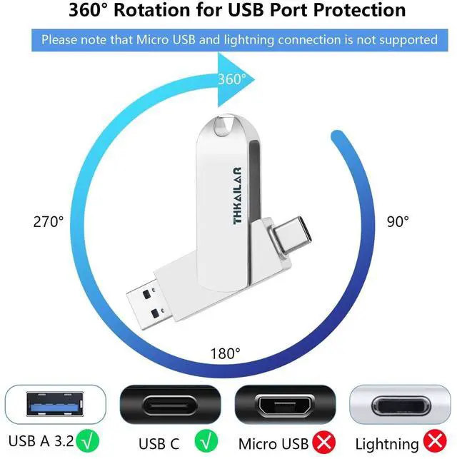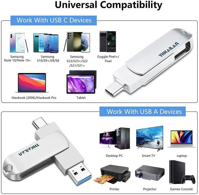Thkailar USB C Flash Drive 1TB,2 in 1 USB A to Type C Thumb Drive, Read Up to 500MB/s Memory Stick Dual Ports,USB 3.2 Flash Drive for iPhone 15/16/17, Android Phone,Computer,MacBook,Tablet,Laptop