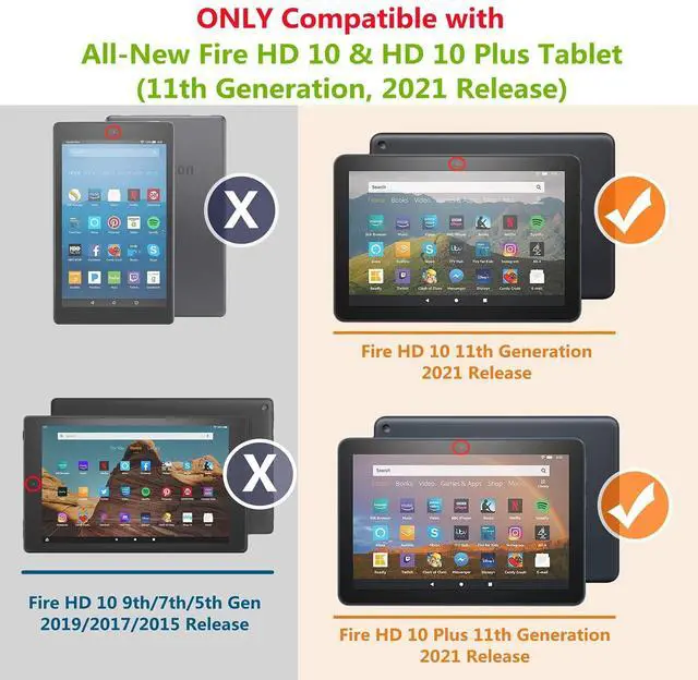 COMPATIBLE WITH: Protective Case is ONLY compatible with Fire HD 10 Tablet (11th/13th Generation, 2021/2023 Release) and Fire HD 10 Plus. NOT compatible with any other kindle fire tablets, please check your devices Model No. before purchasing ^^