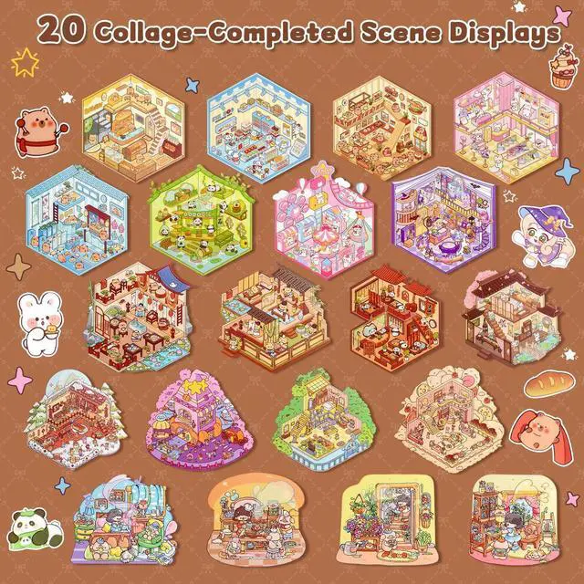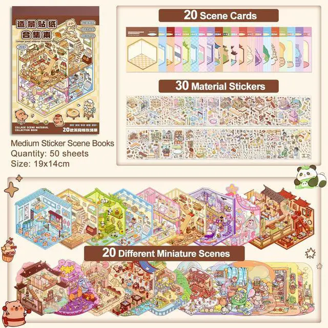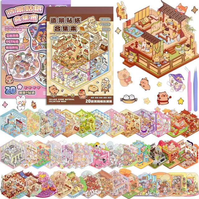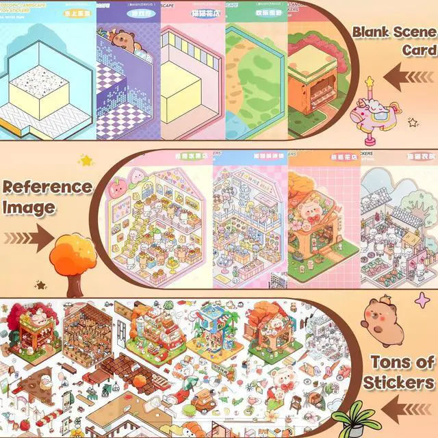 ASTARON DIY 3D Sticker Scene Book- Stress Relief & Healing-The process of assembling scenes calms the mind, letting you savor the satisfaction of creating your own miniature space while easing daily pressures. -Premium Materials-The background boards feature thickened paper with a laminated surface, making them easy to peel and stick. You can adjust and modify house scenes as you build. The cartoon stickers are crafted from safe, non-toxic, high-quality materials that are waterproof, tear-resistant, and reusable. -Perfect Gift-Whether as an educational toy or a stress-relief item for adults, this sticker book is an ideal choice.