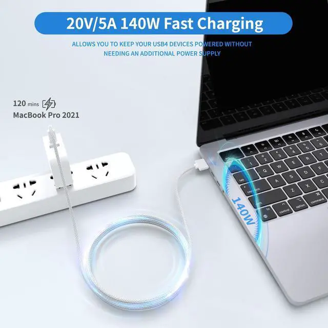 SEAMLESS CONNECTIVITY FOR EVERYDAY USE: Experience hassle-free charging with our 140W magnetic safe charging cable's seamless magnetic connectivity, designed to simplify your MacBook charging routine. With a convenient 6.6 -foot length and durable nylon braided construction, it offers flexibility and reliability for all your charging needs. ^^