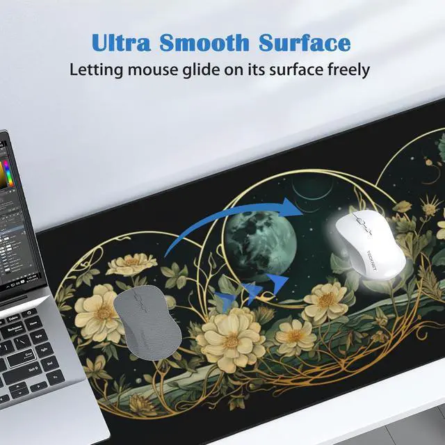 Large Mouse PadThe desk mouse pad measures 31.5 x 15.7 inch, with 2 mm thickness, big enough to accommodate your computer, laptop, keyboard and other desk items, and still leave plenty of space for your mouse to move all around. ^^ High qulity Workmanship and MaterialsThe mouse pad has delicate stitched edges, it is individually hand crafted with high quality warkmanship so not fray, deformation and degumming in prolonged use, relax to use. The computer mouse pad is thick and feels soft in the hand, which will provide comfortable support while typing, reading, writing and even sleepping.