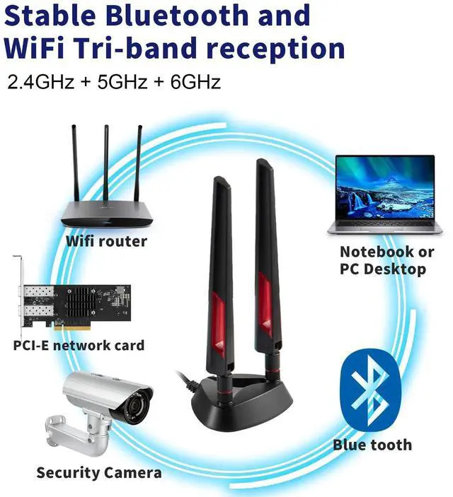 Frequency Range: Tri-Band WiFi 2.4GH z (2400 - 2485 MHz), 5GHz/ 5.8GH z (5150 - 5850 MHz), 6GHz5900-7125MHz3.