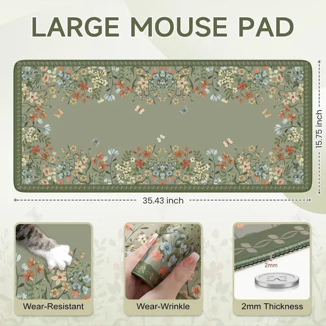 Full Desk Mousepad-This laptop lap pad measures 40 cm * 90 cm and can be used to hold mice, gaming keyboards and other desktop items. The longer and larger size of the xxl desk mat will provide you with a better experience ^^ Smooth sliding-The textured surfaces of desk cover mats allow for precise mouse movements. Our desk blotter mat is optimized for fast movement, maintaining excellent speed and control at work or in games ^^ Anti-slip Back Side-The desk topper's non-slip rubberized base grips the desktop firmly. So no matter how much you move your mouse and keyboard, this desk cover protector stays firmly on your desktop ^^ Protect your desktop-The surface of the neoprene mat is made of comfortable Lycra material with stitched edges for wear resistance and durability.
