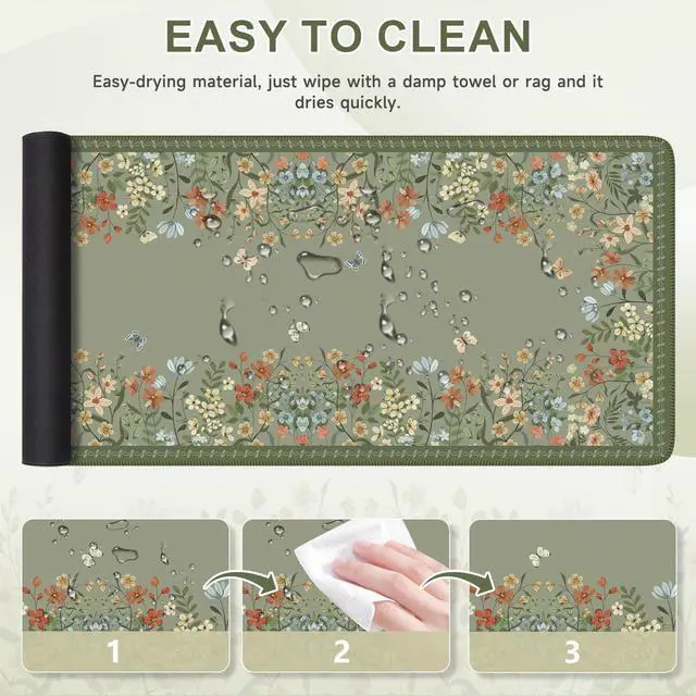 As a result, this premium keyboard and mouse mat protects your desktop from scratches, stains, heat and spills ^^ Easy to clean-To clean, all you need to do is wipe the surface of the waterproof desk mat with a damp wipe. The desk writing pad will air dry quickly in its natural state and is ready to use after air drying