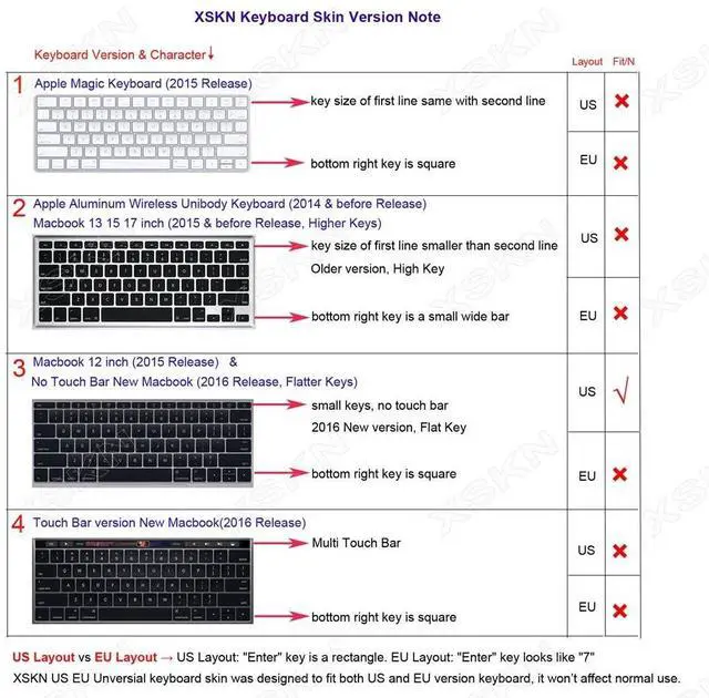 Macbook starts with"A****")Special notes: -The keyboard skin was designed NOT allow back light shine through, please kindly note that-XSKN assure every product provided with excellent quality-Affected by daylight, product color may look slightly different under camera-Camera's Focus Mode will make focused part pretty clear and unfocused part fuzzy, but real product will be nice and clearPackage