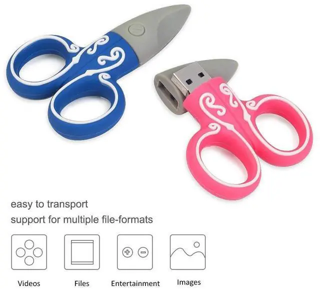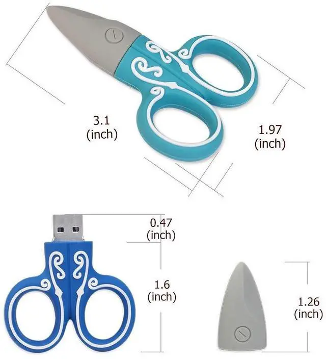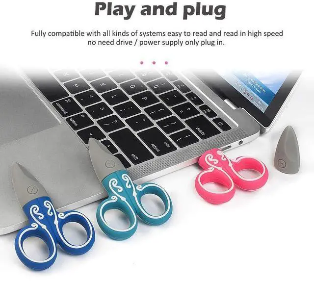 Adorable USB Drive: pack of 3 novelty cartoon design 16GB scissors flash drive, featuring strong and soft silicone protective cap, shockproof and stylish