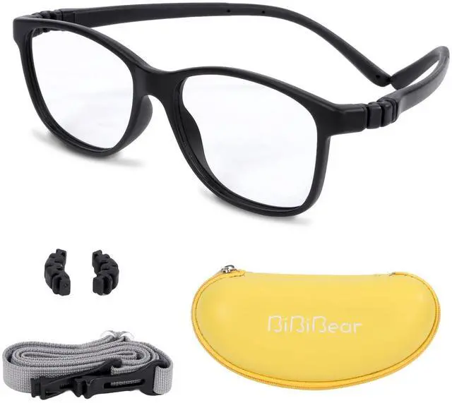 DescriptionMade of flexible TR90 material, these lightweight children's glasses won't hurt little noses even during all-day wear. The 360 bendable hinges survive rough handling, while the anti-slip elastic strap keeps them secure during sports. Choose from 2 fashionable colors with optimized frame curves for 2-15 year olds - includes a protective hard case perfect for school or travel.