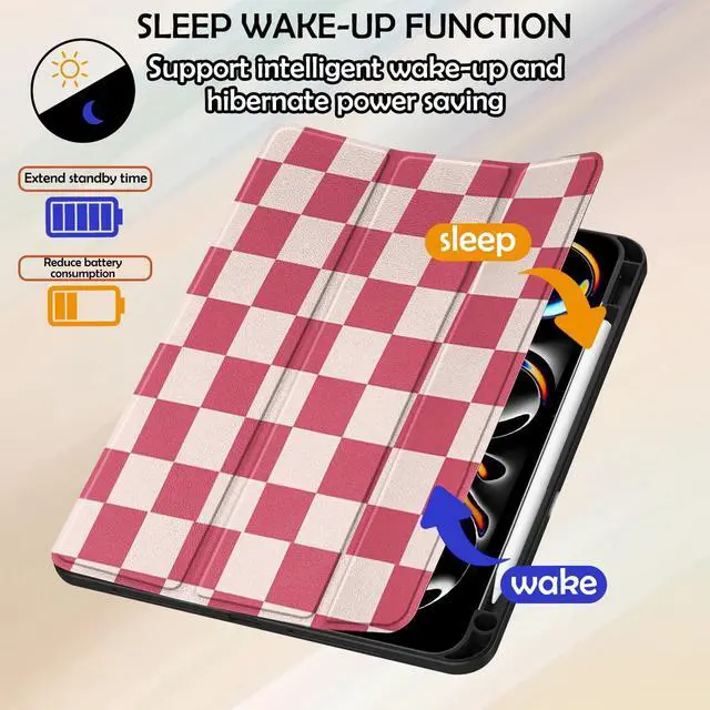 Inch M4 (2024 models: A2925, A2926), not compatible with any other iPad models, not compatible with any other iPad models. Check the bottom of the iPad to find the model number before purchasing. ^^ Muti-viewing AnglesThe case design of the tri-fold stand can change the angle to meet your viewing and typing needs, the lightweight design adds excellent protection to your device, the pattern used in this iPad series case allows you to tablet is more stylish and attractive. ^^ Full ProtectionThe case is made of durable TPU and PU, the front and back are covered with soft material, the TPU material inside can hold your iPad and protect its back cover and four corners, protecting your tablet from drops and scratches wound, soft and silky material, providing a comfortable touch to your hands. ^^ Sleep and WakeSupports iPad Pencil charging, built-in provides automatic sleep/wake function to save energy when the lid is closed, and precise cutouts for cameras, speakers, ports and buttons without removing the case Full access to all ports and functions. ^^ ReuseableiPad protective case The case is carefully processed, very durable and reusable.